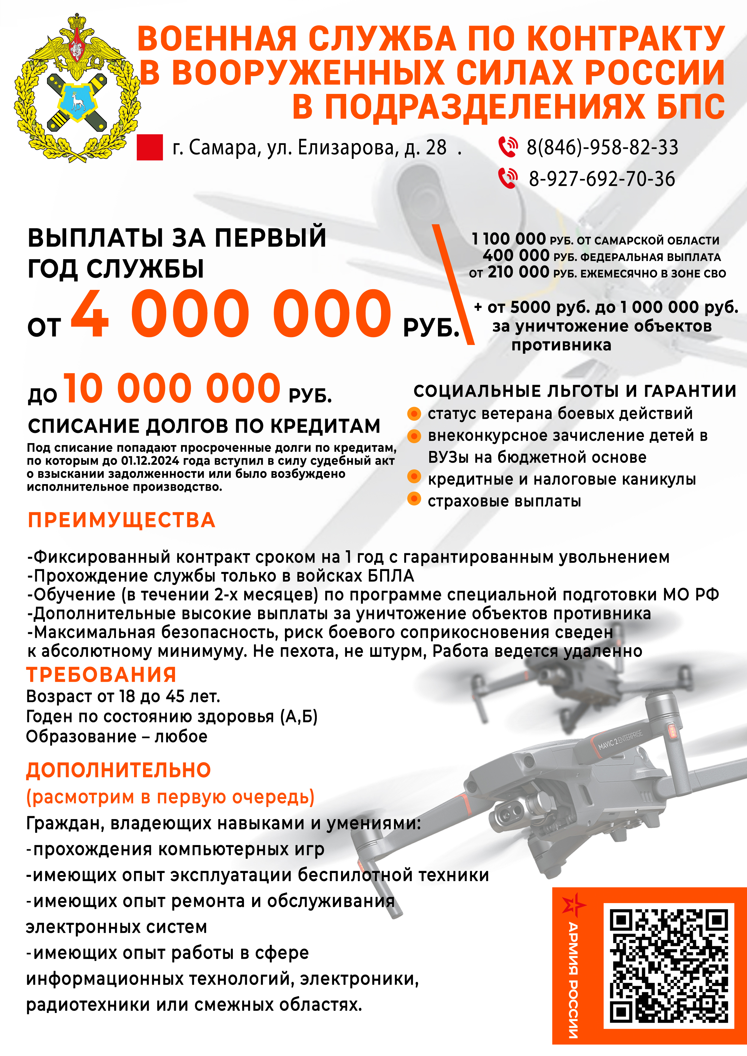 - прохождение службы только в войсках БПЛА;